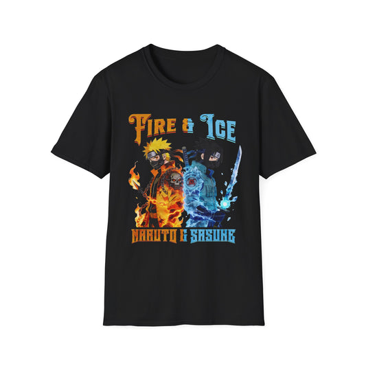 Fire & Ice Naruto & Sasuke MK Crossover Split Character T-Shirt | Anime/Videogame Mashup