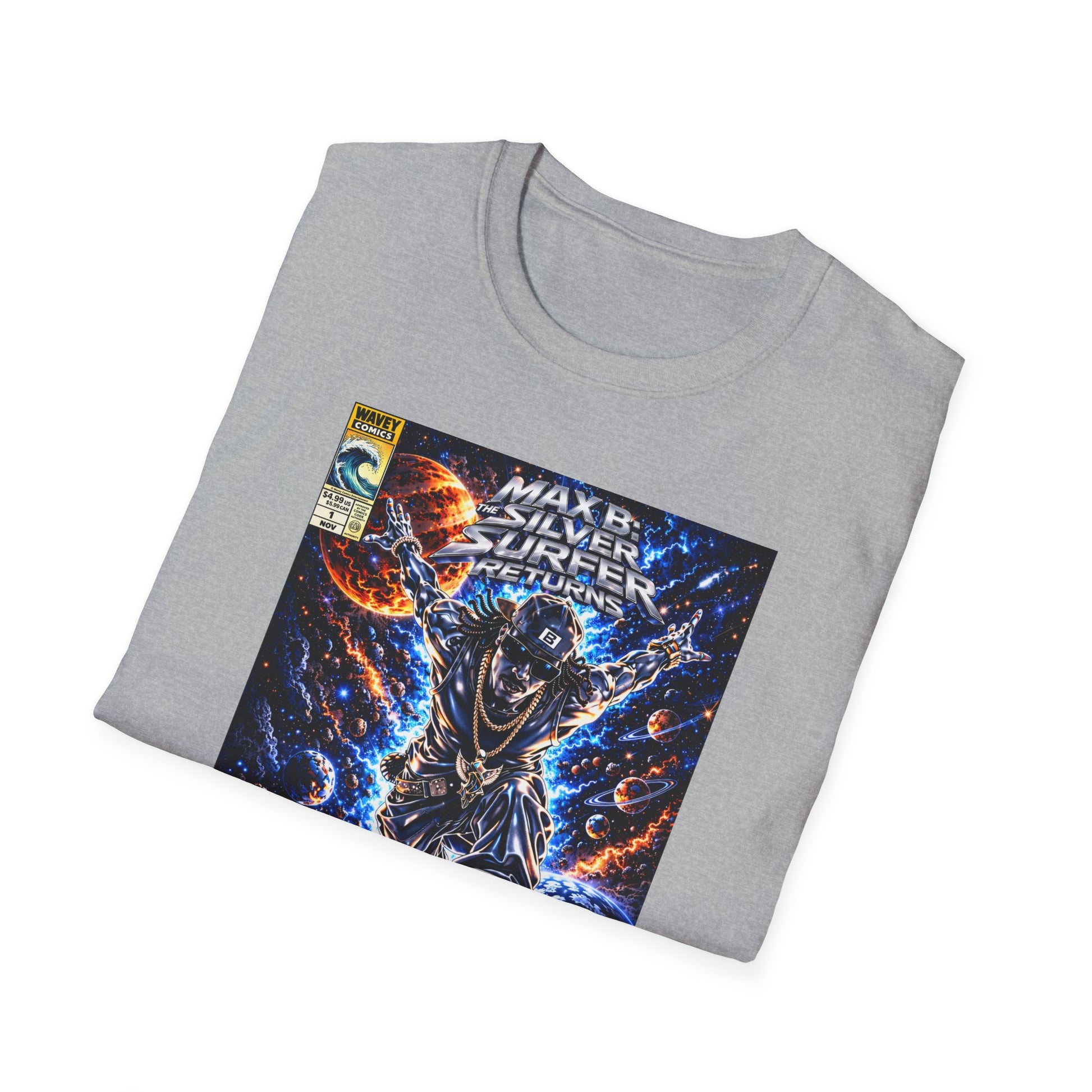 Riding the Cosmic Wave Hip-Hop Comic Mashup T-Shirt | Max B Silver Surfer Parody