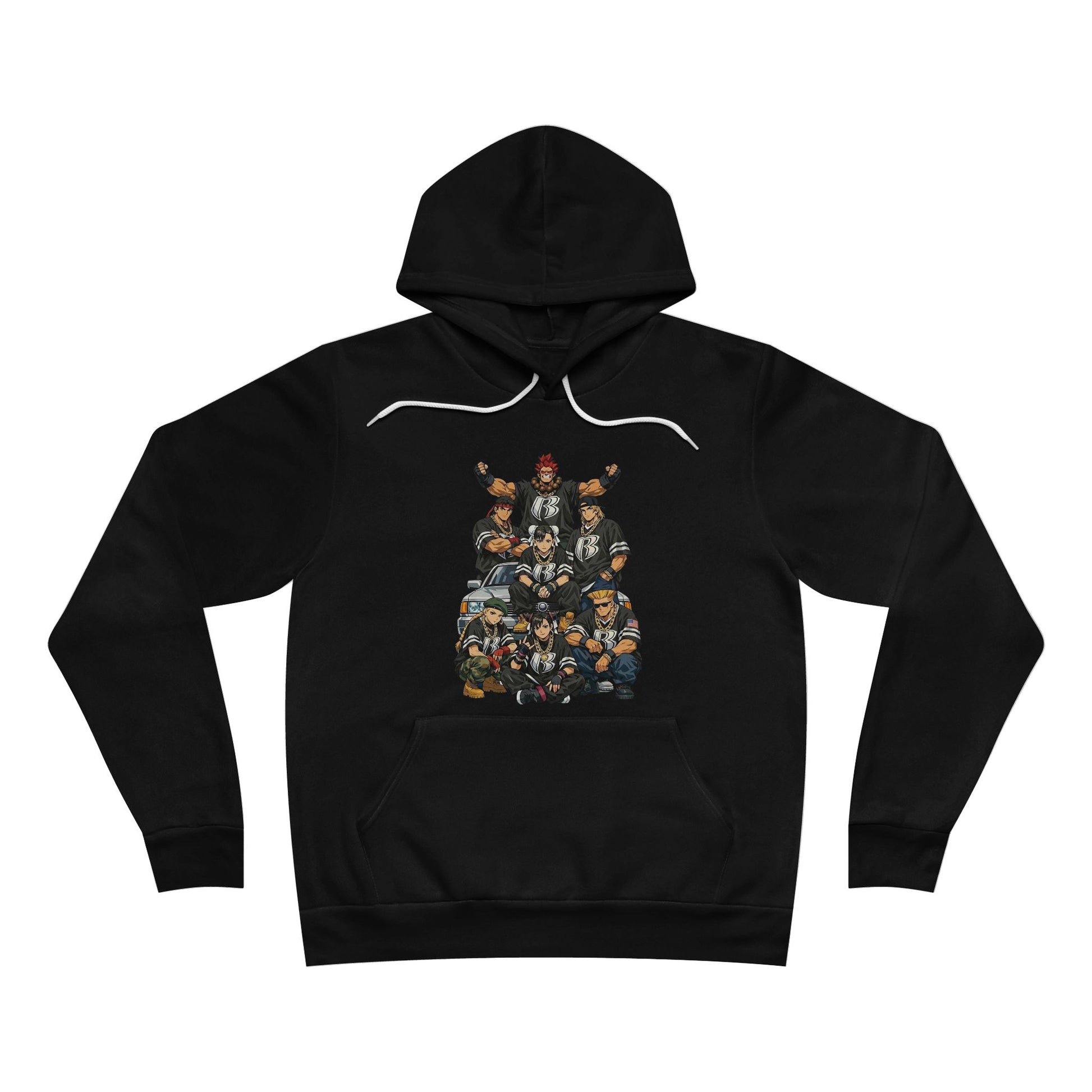A bold, retro streetwear hoodie that channels the raw energy of arcade nights and crew anthems. The graphic reads like a group portrait from a fictional crossover — fighters lined up with the attitude of East Coast crews and the gritty glow of neon-soaked alleyways. Slip it on and you feel the thump of old-school bass, the scrape of concrete sneakers, and the electric camaraderie of late-night hangs. It sits comfortably in a wardrobe for people who collect vinyl, chase throwback aesthetics, and value a statement piece that wears like it belongs to a crew. Wear it to block parties, gaming nights, or when you want to carry that 'ready for anything' attitude down the street.